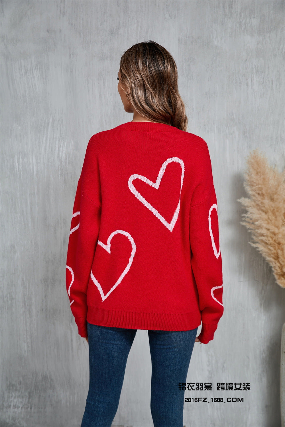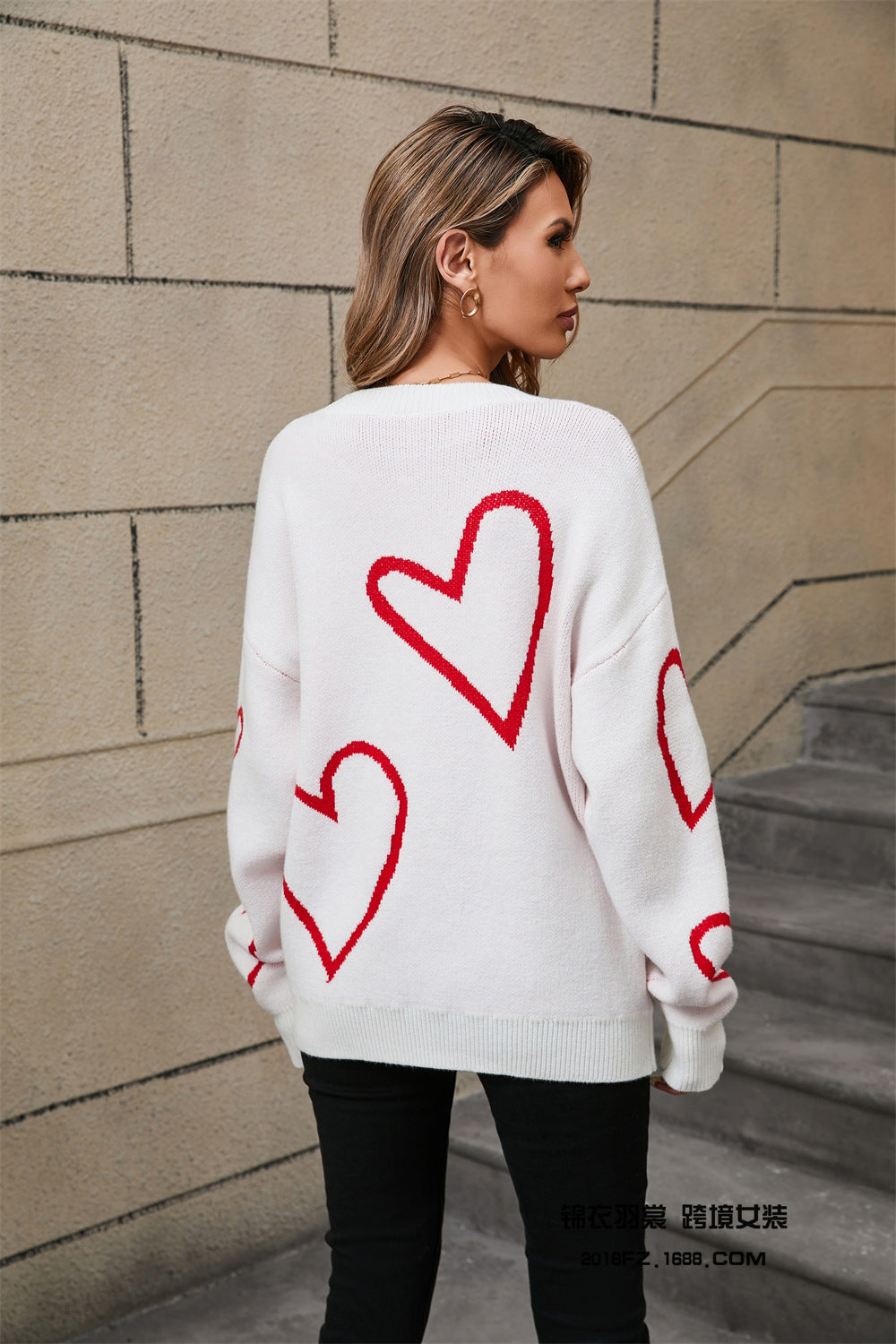 Herbst und Winter herzförmiger Rundhals-Strickpullover mit warmem