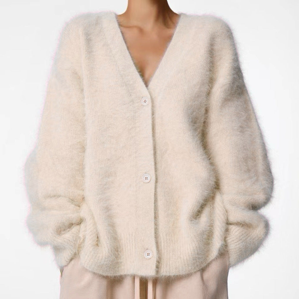 Lockerer weicher Strickpullover aus Nerzimitat mit langen Ärmeln
