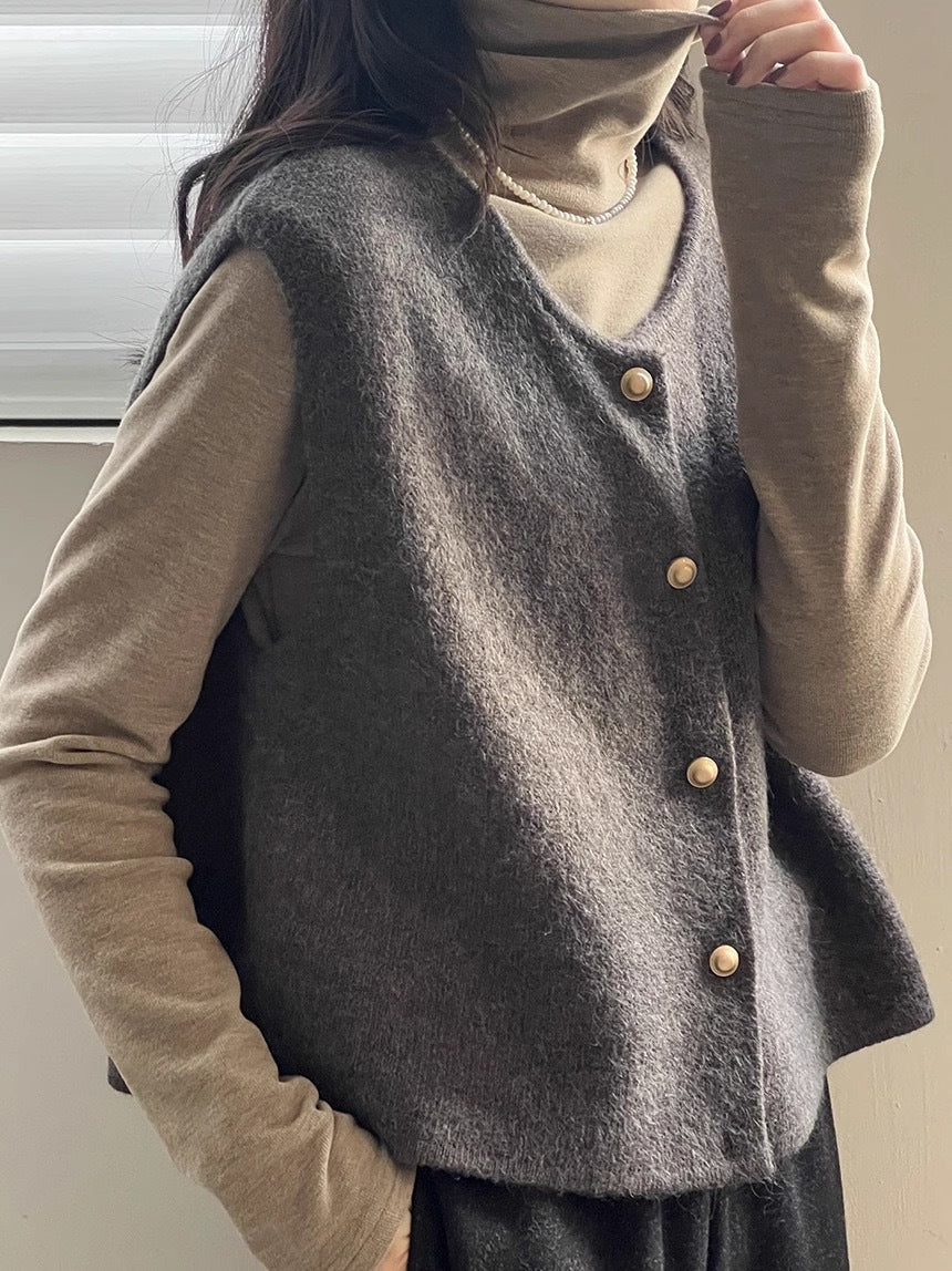Sanfte Strickweste mit Rundhalsausschnitt und schmaler Passform